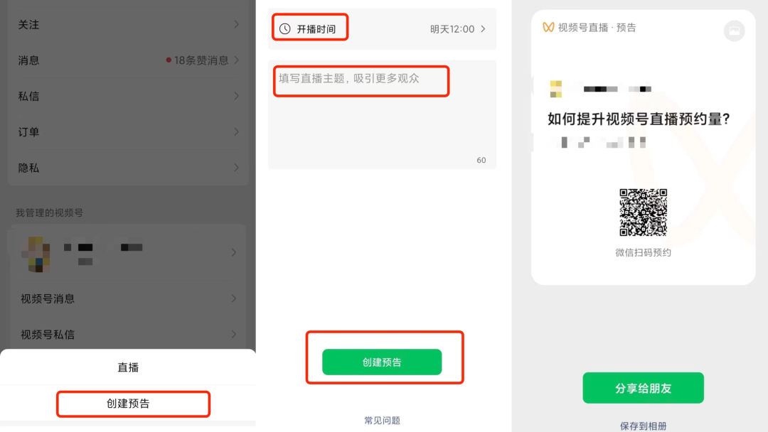 了解完视频号直播预告的创建和预告的展示场景之后,一起来看看提升直播预约量的几种方式。