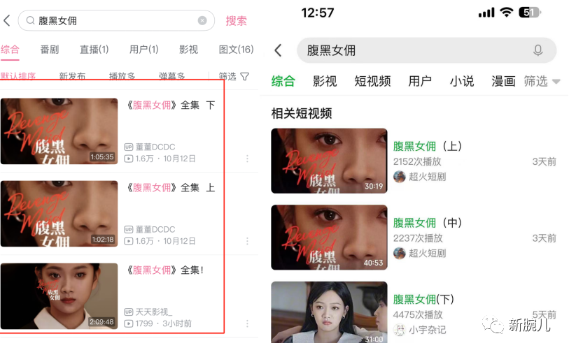 专注于报道短剧行业的新媒体新腕儿在爱奇艺和B站平台上搜索了近期热门短剧,发现多数热门短剧不付费,也可以在平台免费观看,而且还是全集。