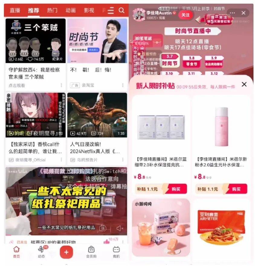 细心的网友应该有所发现,不久前,B站App首页出现了淘宝直播的广告小卡。