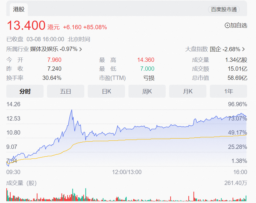 流量的尽头是变现,这句话同样适合TVB。在抖音直播带货尝到红利后,紧接着又宣布和淘宝直播达成合作,TVB加码直播的消息显然是获得了资本市场的“捧场”:3月3日,TVB入驻淘宝直播的消息一出,TVB母公司电视广播的股价就大涨超过51%,3月8日淘宝首播结束后,电视广播的股价又大涨了85%。