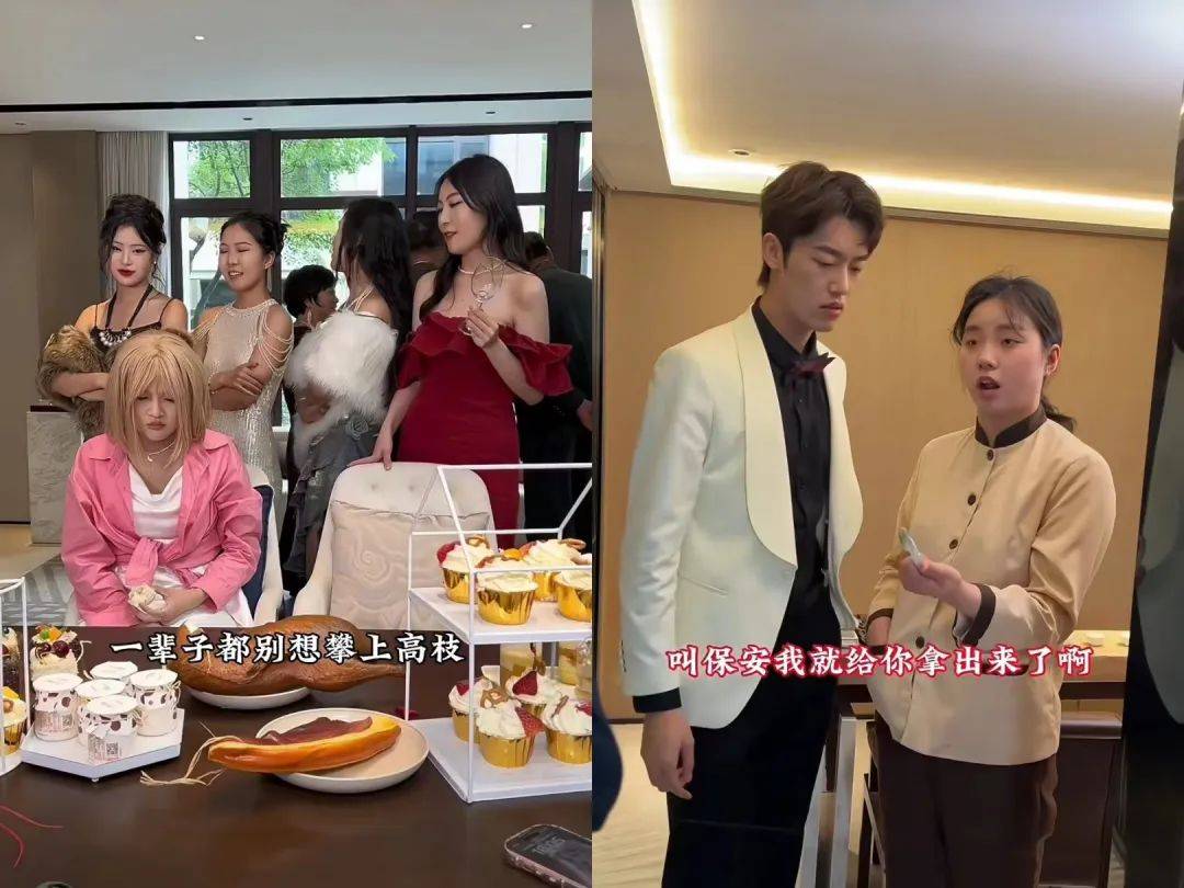 在她看来,原本在短剧中承担吐槽役角色的王妈,在这一集中成了槽点本身:霸总顾景琛批了一个亿举办家宴,王妈却因为不想拖地让每一位来宾都套上鞋套,甚至当场打脸一位想吐在地上的客人;拍卖会上,王妈偷拿了拍卖的项链和镯子,还与保安嘴硬。