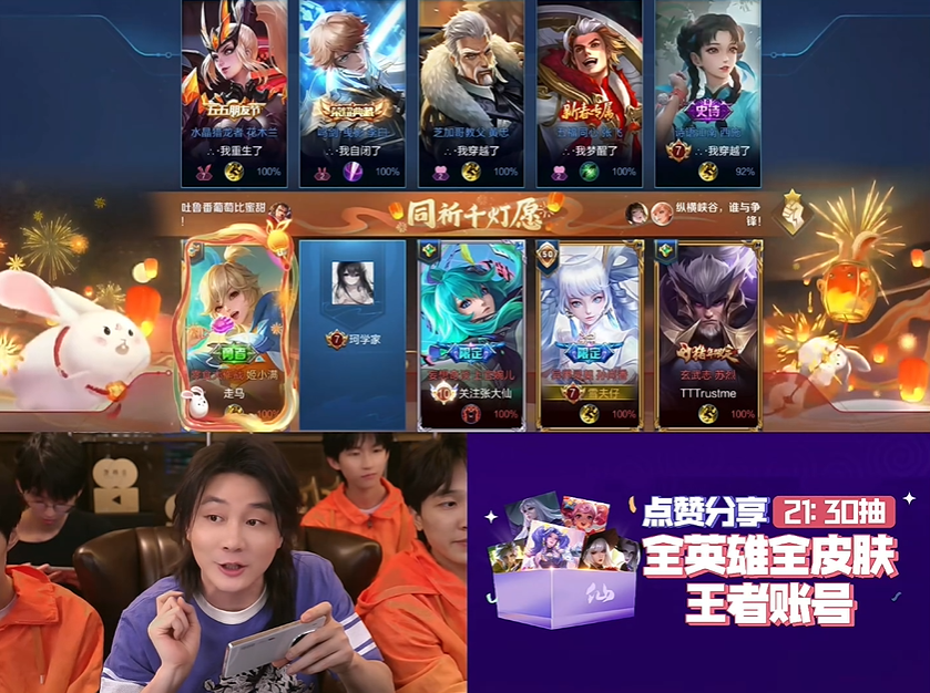 以张大仙直播间为例,在开启《王者荣耀》首播当日,张大仙只用了十分钟便将全站人气榜第一、点赞数破亿等多个成绩收入囊中。期间,直播间嘉年华、火箭等礼物也始终没断过,其粉丝群也在不断地加满新开,甚至由于观看直播人数太多,一部分观众反馈观看时出现了卡顿的情况,甚至有人笑称,只要张大仙在直播中上一次厕所就会掉10万观众。