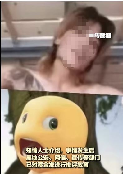 有媒体报道,蔡金发本人已经向公安机关交代,“发布视频的原因是和前女友吵架,前女友将视频上传。但是他们(公安机关)估计他可能是酒醉以后发错了。”事情发生后,属地公安、网信、宣传等部门也对蔡金发进行批评教育。
