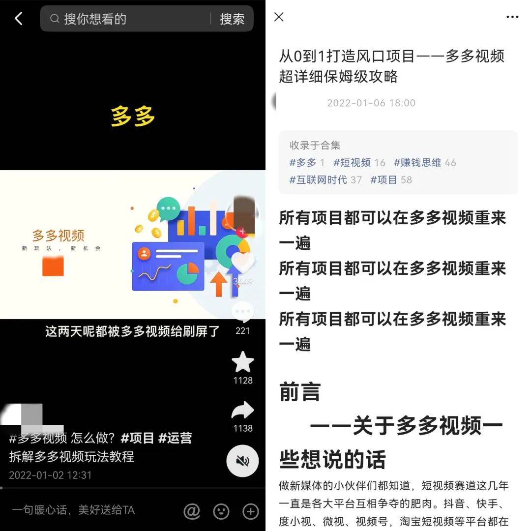 2022年1月到2月初,不少副业社群和培训圈就出现了多多视频赚钱项目。