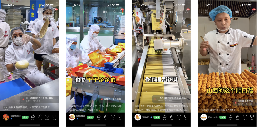 还有稷山麻花将生产过程变成了顺口溜,增加了趣味性;阜阳馒头将生产过程剪辑成了小短片,增添了故事性等等,围绕一个内核可以延伸出很多种内容创意。