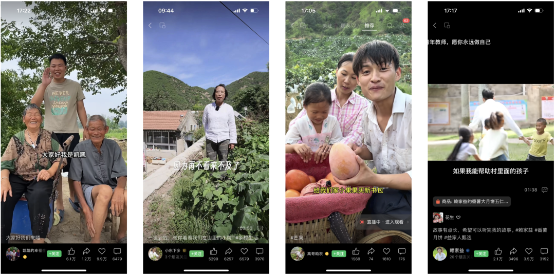 一类是返乡青年借助镜头呈现新时代的乡村面貌。例如赖家益,最高一条视频的播放量超过3000万,获得了80多万点赞,仅仅红薯这一单品,在视频号上爆卖40多万单,直接带动周边村子的红薯种植和售卖。