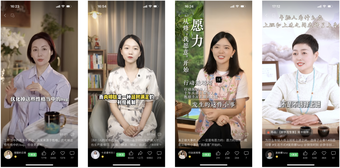 谈起知识类达人,紧跟着出现的关键词便是知性、优雅、从容。因此这类爆款内容的内核是展现榜样的力量,内容的呈现形式也多为口播、访谈类。