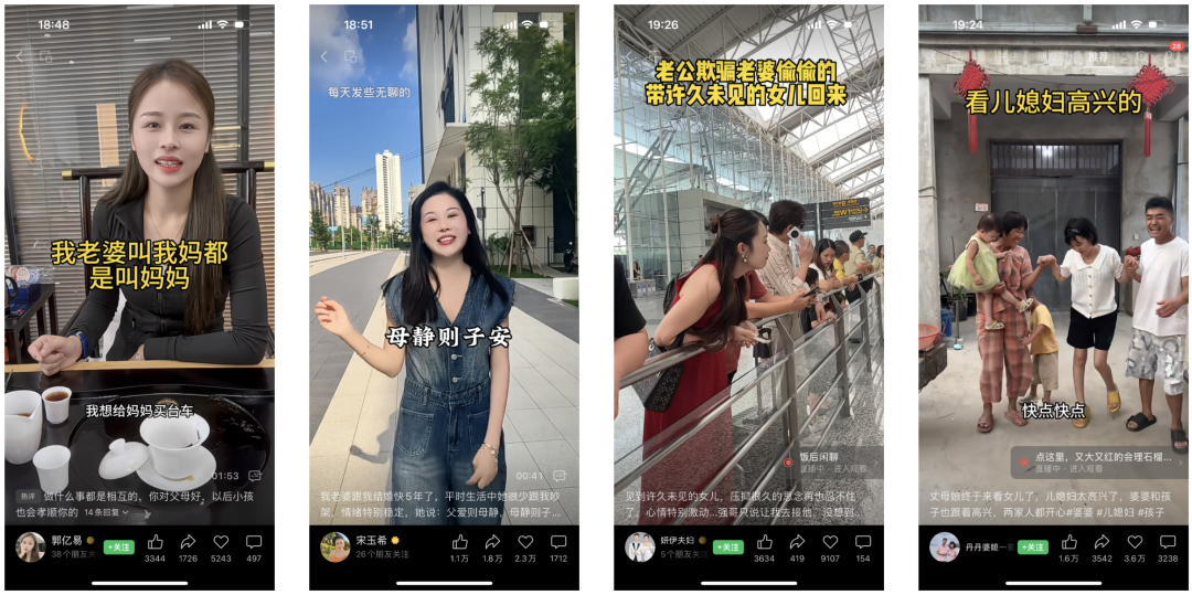 比起现实生活中可能「家家都有本难念的经」,生活类达人在视频中演绎出的父慈子孝、婆媳和谐成为了观众幻想的美满生活样本。