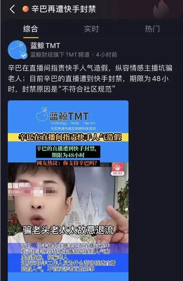 结局可想而知,辛巴直播间再次被快手封禁48小时。