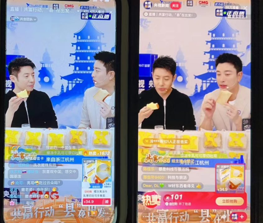 同步多端直播,尤其是实现了抖音、快手双端同步直播,同步下单,这在行业内尚属首例,据了解,这也是央视新闻首次共创直播。
