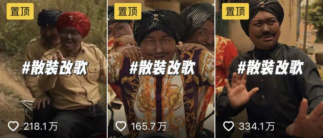 目前粉丝量已经接近1300W的@豪哥哥 主打“散装改歌”、二次创作。他发布的视频,会围绕着不同的剧情主题将各种热门流行歌曲进行魔性改词,然后通过生动且夸张的方式演绎呈现,从而形成了一种独具特色的全新风格,让用户看起来欲罢不能。在其一系列改编作品中,最近最为出圈的便是几条印度经典歌曲的改编演绎视频。
