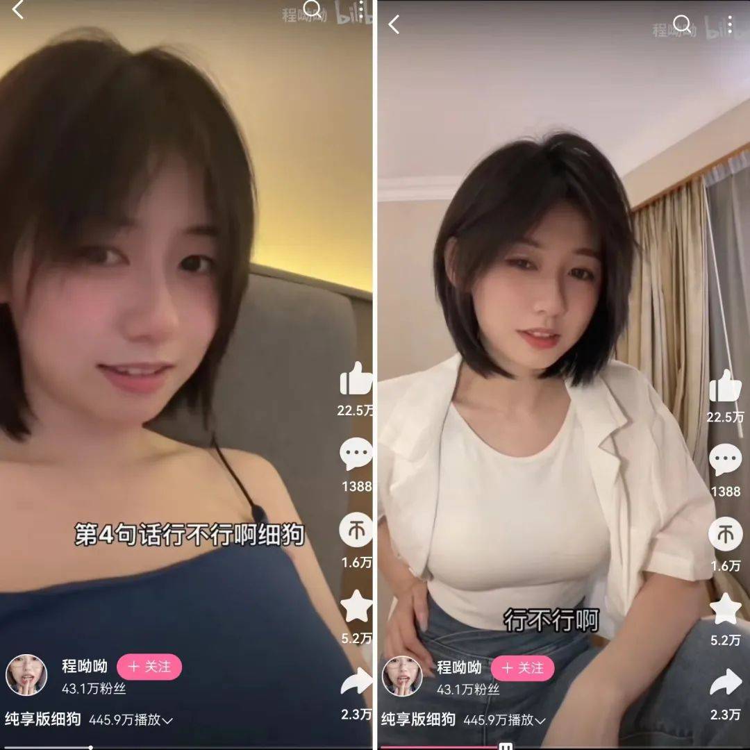 其中,“你行不行啊细狗”因极强的嘲讽及攻击意味意外走红,并被健身人士一度奉为圭臬。这种热度同样传播至有“热梗集散地”之称的B站,在搬运视频的“假号”涨粉4万后,@程呦呦入驻B站,10月间共发布6支视频,包括不同场景下的“细狗”健身纯享版、几支唱跳视频以及一条个人声明,增粉35万。