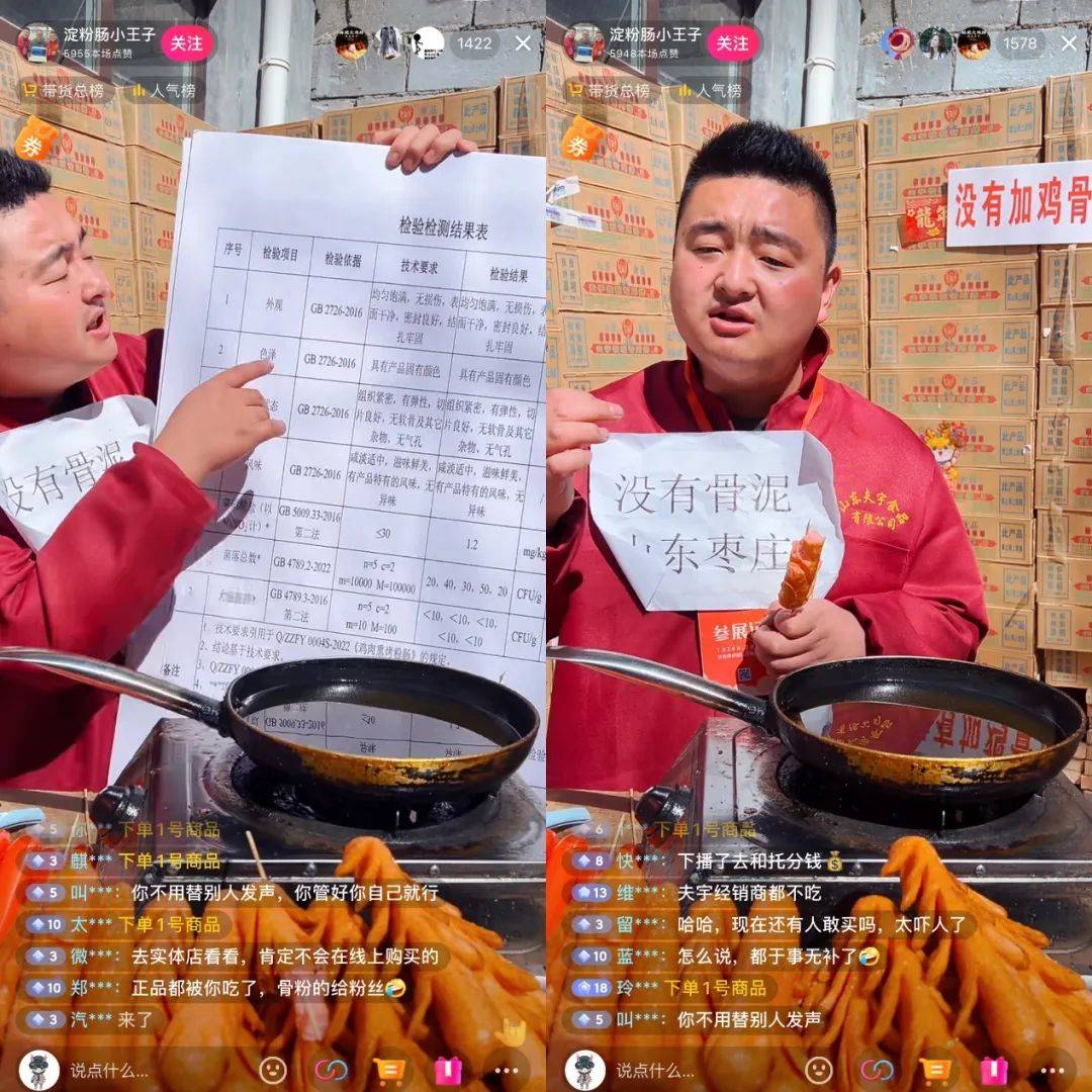 “从3·15当天直播有人说淀粉肠使用了鸡骨泥,我们懵圈。淀粉肠全行业直接停摆,各路牛鬼蛇神抹黑。到不停地搜索证据、据理力争。不断地出视频,不断地直播跟观众解释……我有感到委屈,有想哭。”抖音博主“淀粉肠小王子”回忆,事发之初一场直播下来几百万人观看,大部分是骂人,但伴随着品牌方下场直播探访生产工厂,“(淀粉肠)爆单了”。