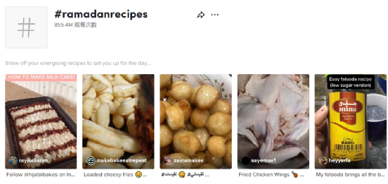 TikTok上和斋月相关的话题热度也居高不下,话题标签#ramadan热度已经突破了350亿,其他相关的例如#ramadanrecipes的曝光量也超过8000W。