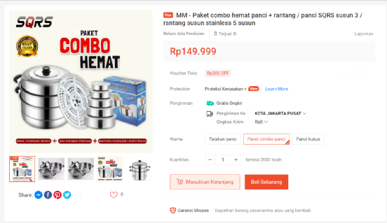 可以看到,这款商品目前打49折,售价仅148320印尼盾,约合9.68美元。