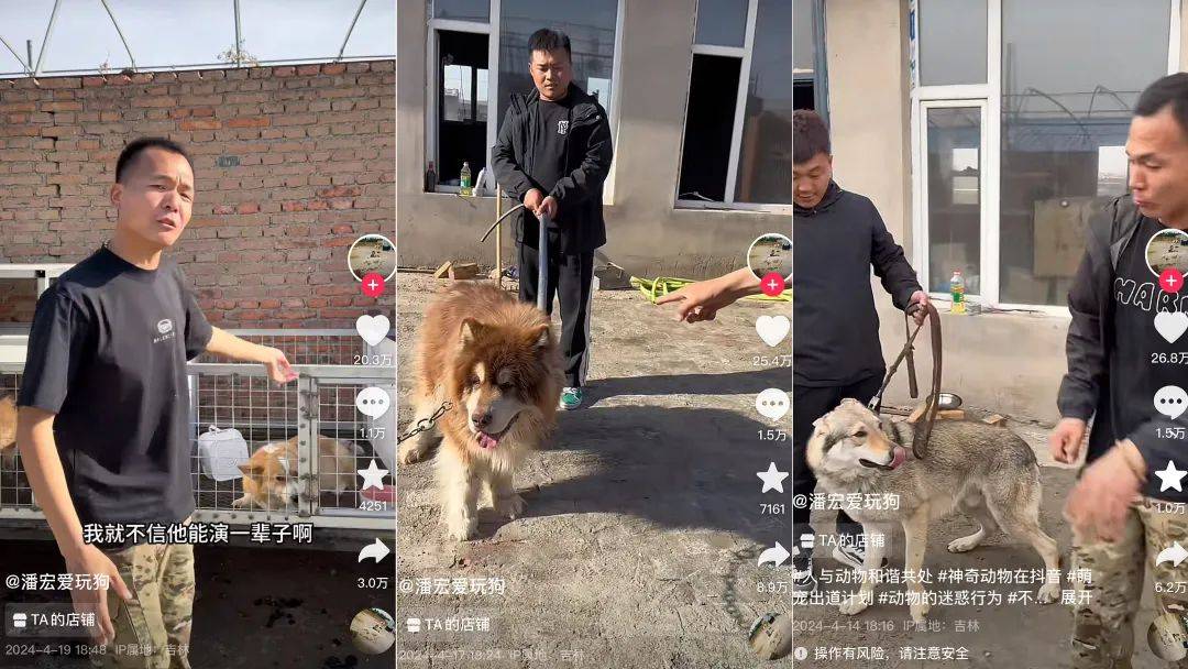 @潘宏爱玩狗,家里三代养犬,其发布的早期作品以分享养狗经验为主,后期他开始帮别人免费训“问题狗”——即性格狂躁,有咬人经历、不服管教的狗。由于潘宏训狗的方式非常硬核且效果显著,加上他本人性格直爽幽默,因此迎来了很多用户的关注。截至发稿前,其张账号粉丝量已达到272.9W。