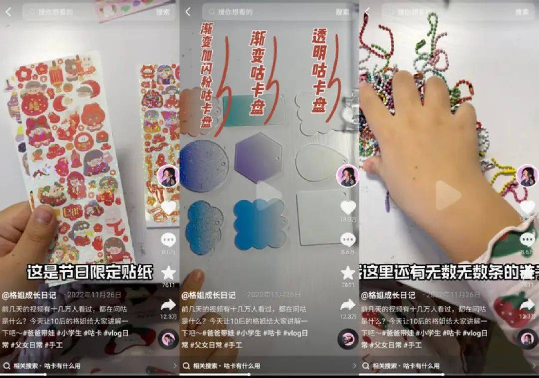 年仅11岁的格姐在抖音号“格姐成长日记”中详细科普了什么是“咕卡”,其图案之精美,种类之繁多,让不了解“咕卡”的网友们大为震撼。