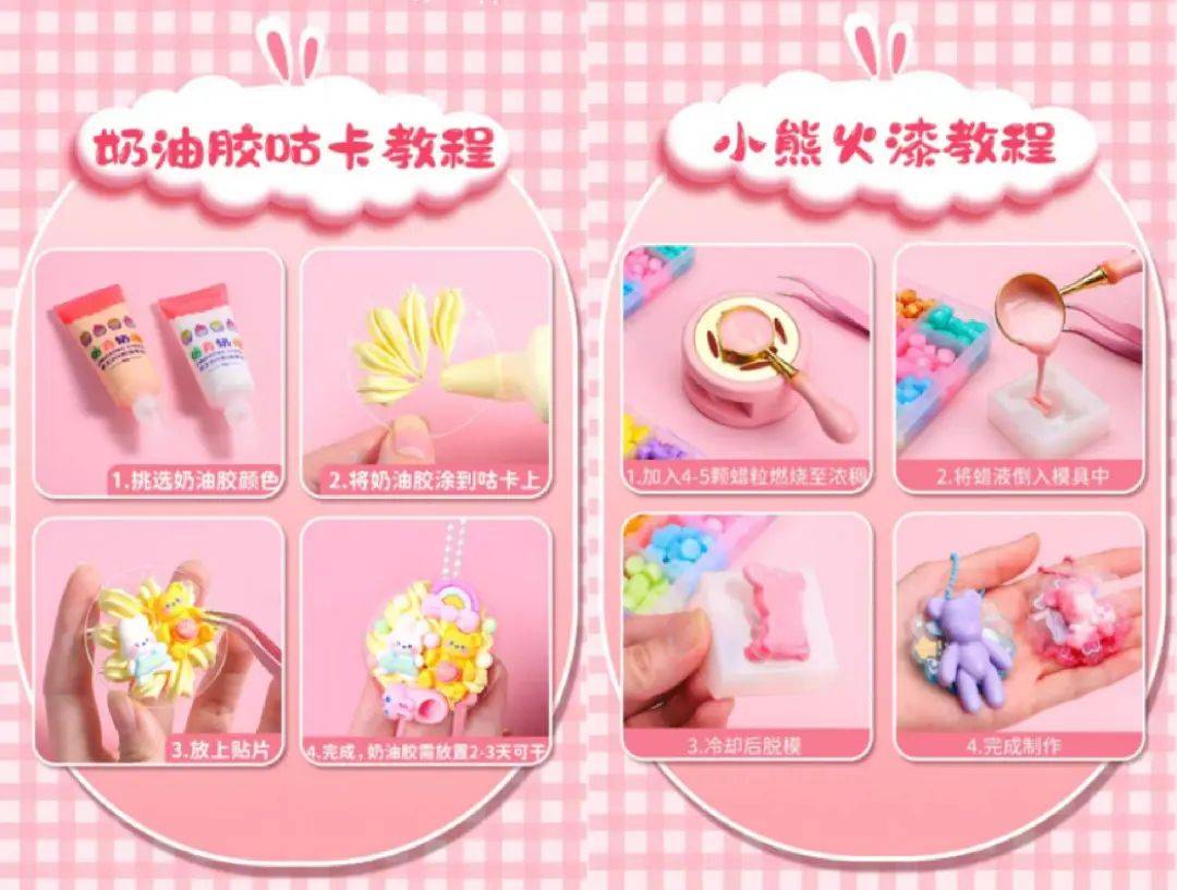 为了应对小学生们的三分钟热度,“咕卡”产品不得不创新出更多玩法,常见的升级款产品有“咕卡”和奶油胶、火漆印章的结合。