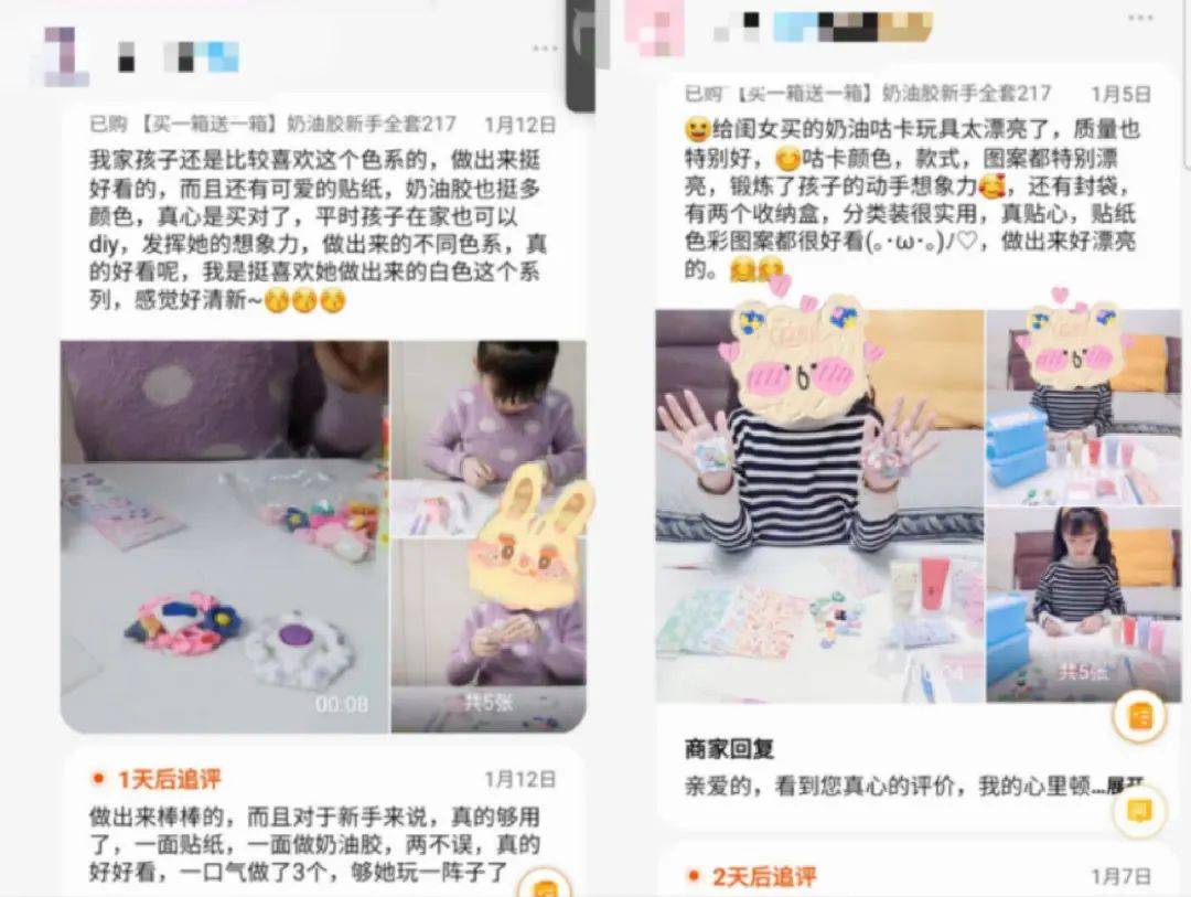 在淘宝月销超5000的咕卡套装链接中,买家秀大多来自家长,不少网友晒出孩子们玩“咕卡”的图片视频,“孩子很喜欢”“没有女孩子能抵挡住咕卡”等评论屡见不鲜。