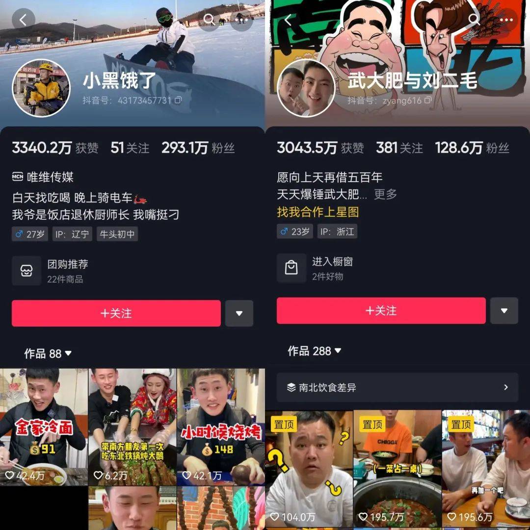 但话题背后隐藏的风险也不小。地域文化、经济发展等讨论都容易引发争议甚至骂战,普适性的美食算是其中较为安全的赛道,相关的账号也不少。“武大肥和刘二毛”同样以南北差异和美食内容为主打,视频多是“带南方朋友吃东北焖面”“南方朋友带我去吃早茶”等;“小黑饿了”主打南北差异和探店内容,有着“给南方朋友做饭包”“带南方朋友吃东北饺子自助”等内容。