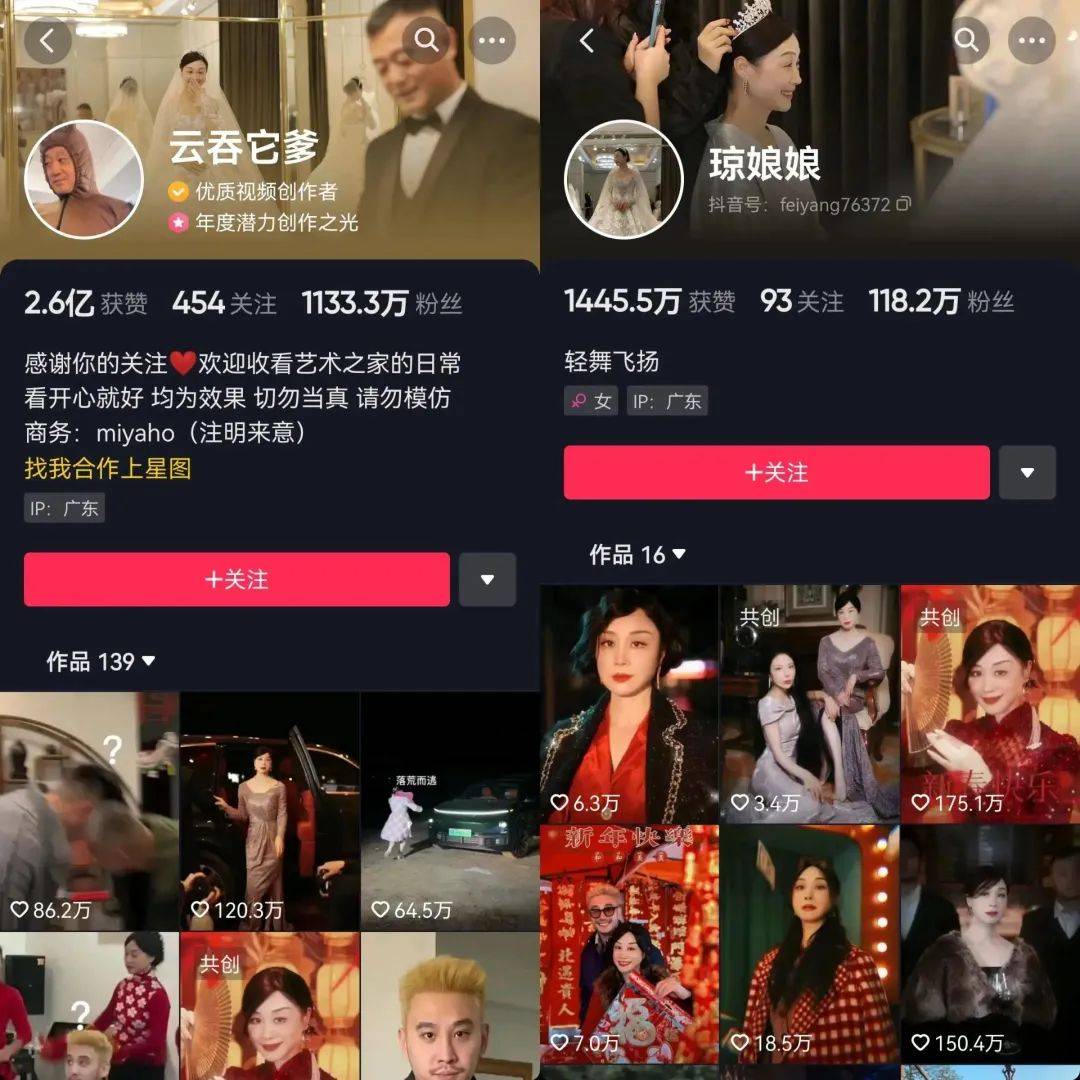 曾经靠着“南北差异”和“生活趣事”火起来的“云吞它爹”,就是一个很好的例子,前期内容主角是哥哥和妹妹,但后期抓到了“催婚”这个热点,出现了一系列相关的内容创作,逐渐丰满了父母的角色,妈妈也开通了账号“琼娘娘”,拍摄起了时尚变装内容,16条视频中就有6条视频点赞破百万,陆续涨粉118万。