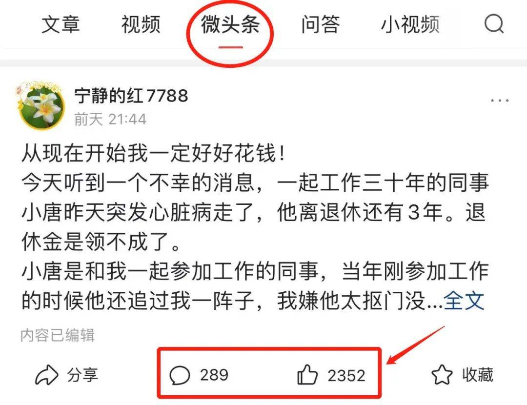 其二,发布了微头条,也能获得曝光和系统推荐,有时候一条内容就能获得几十、上百万的阅读。
