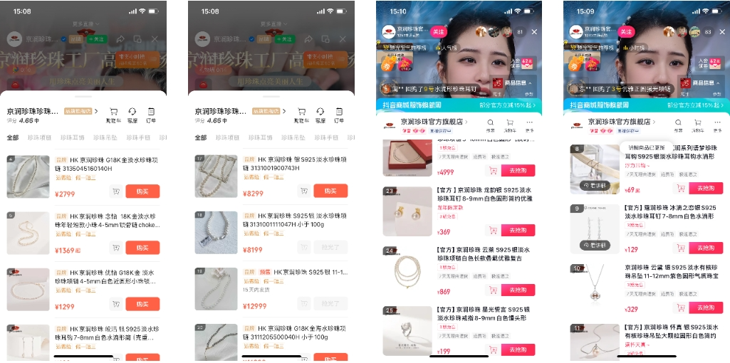 (京润珍珠在视频号和抖音上的产品对比)