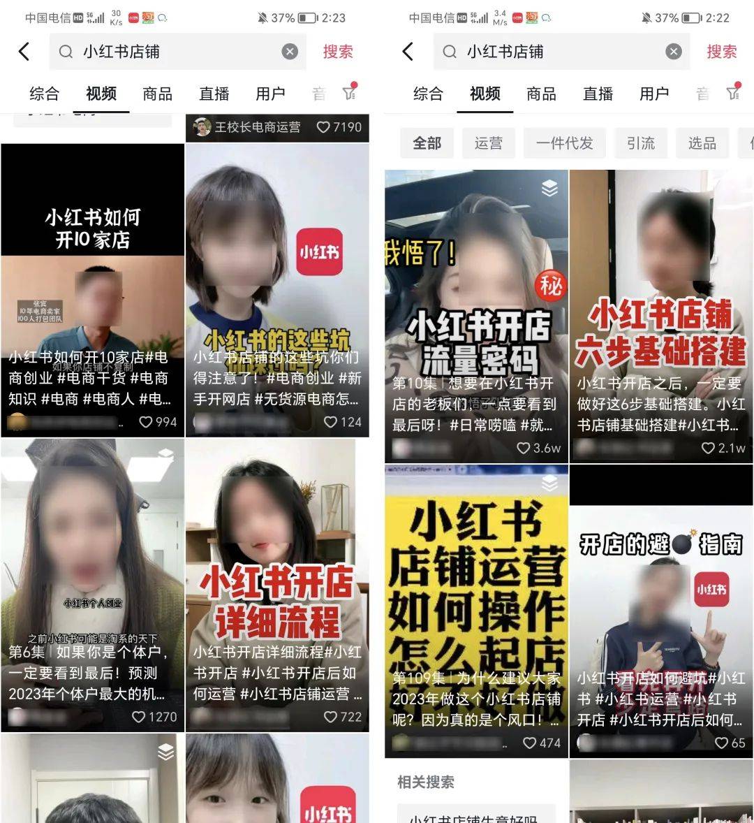 这些视频的后端变现产品大部分是做小红书店铺培训业务的。