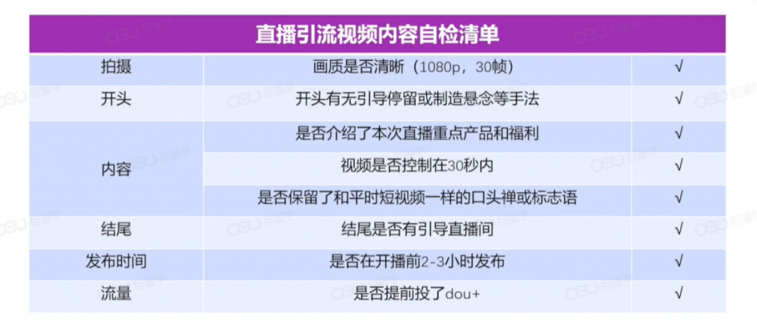 这里有一份直播引流视频自检清单分享给大家,大家可以对号入座,看看有哪些地方能够优化提升。