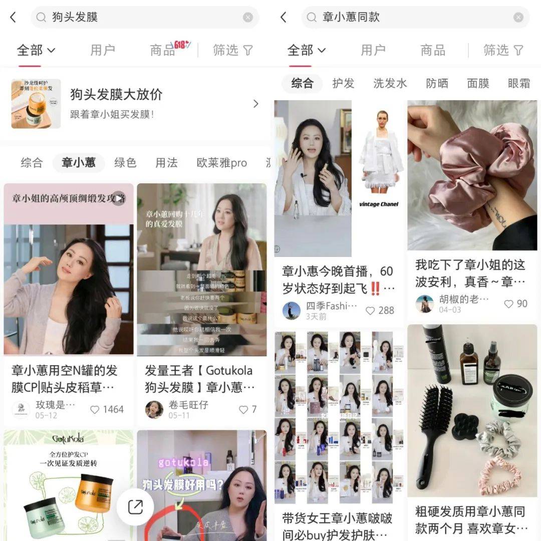 另一方面,章小蕙的“种草”功力依旧不减,不少好用的小众品牌都被章小蕙挖掘出来,还带火了各种同款,比如这次直播带货中出现的“狗头”发膜,就连善于挖掘小众产品的小红书用户都表示“章小蕙选品是没有瓶颈吗,从哪找到的这么多好用又小众的东西”?