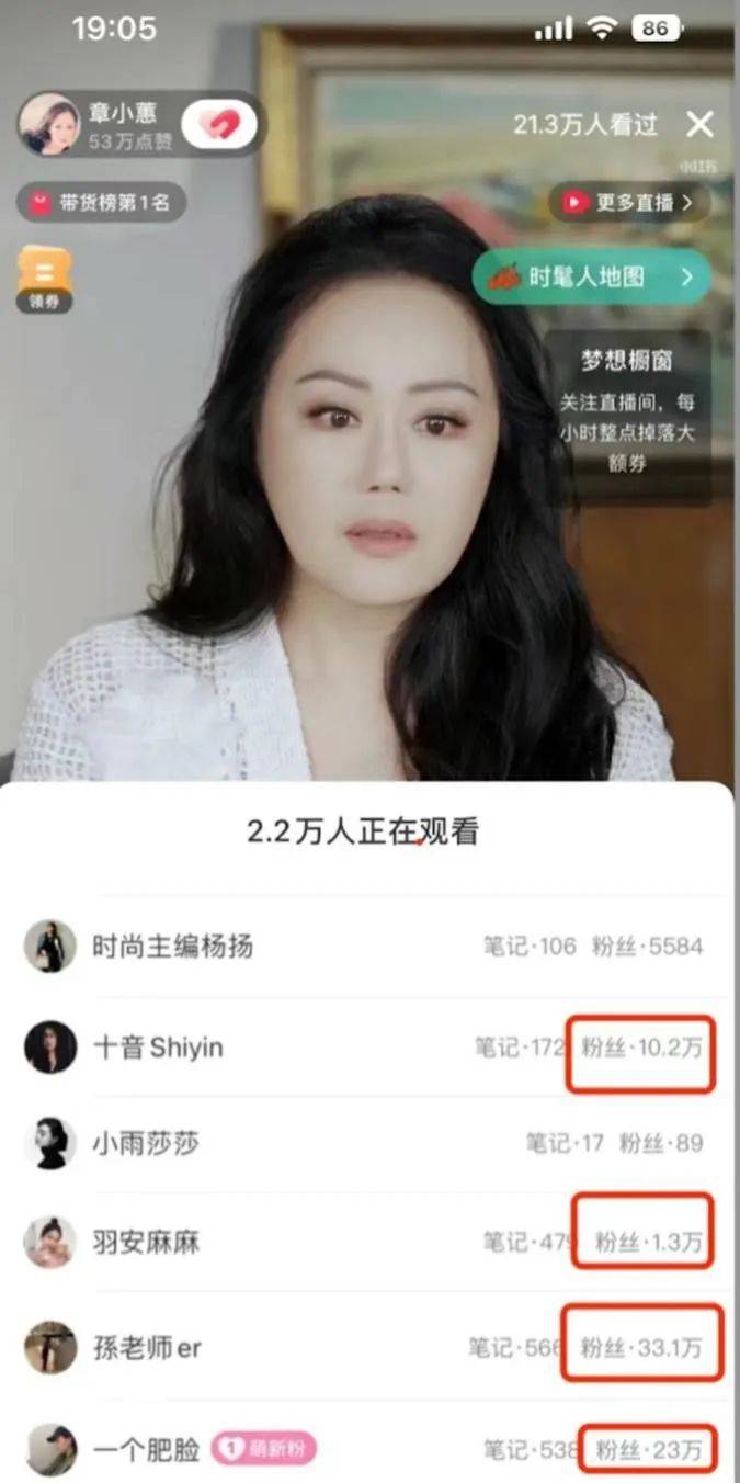 这场持续6小时的直播带货销售额突破5000万元,章小蕙个人的小红书账号也在直播当天涨粉5.09万。