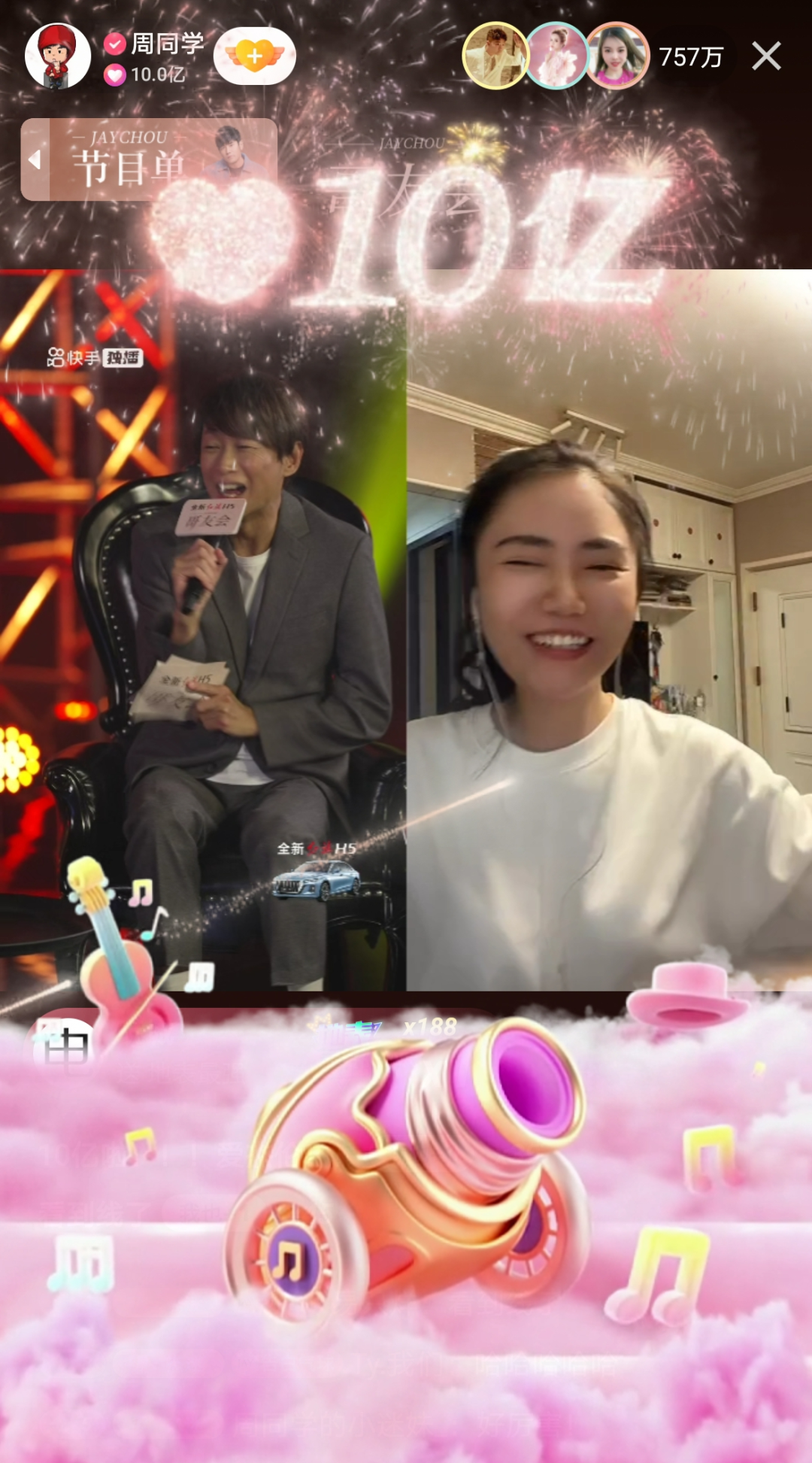 2020年6月,周杰伦宣布入驻快手,账号“周同学”成为其首个中文社交媒体账号。今年7月,周杰伦独家直播“可以说的秘密”登上快手,累计1.1亿人次涌入直播间。不过,相比以往,这场“线上哥友会”仍称得上是周杰伦在快手的大型营业。
