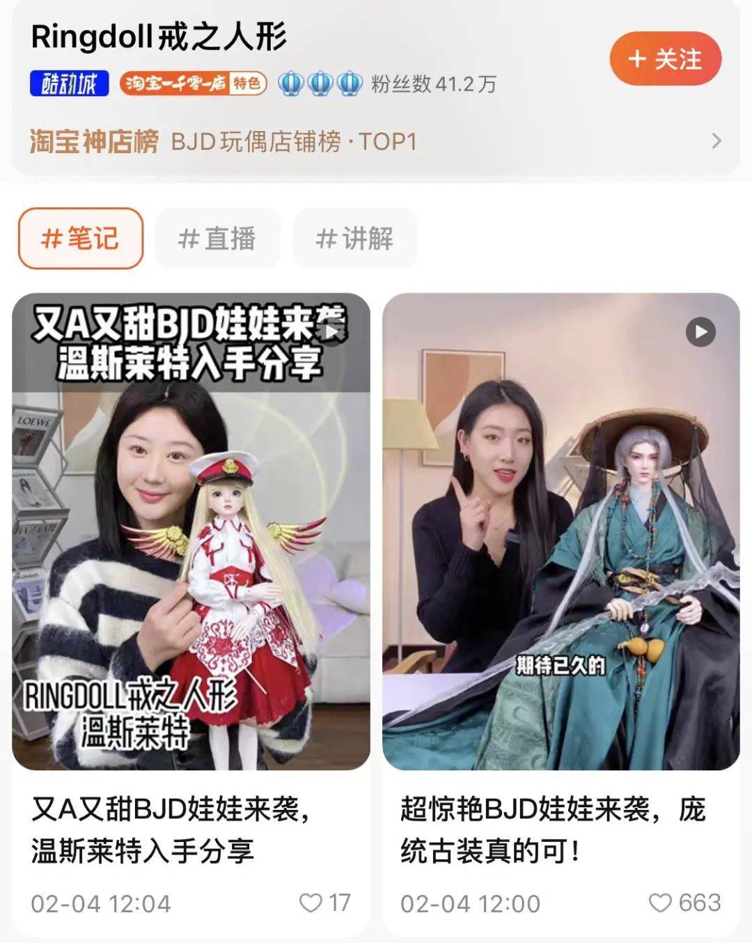 因为稳定且活跃的粉丝群,对“萌新”友好的“大全套”产品以及服务,“Ringdoll”已经积累了40多万粉丝,成为细分类目第一店。今年以来,淘宝陆续展开“店号一体”、直播间和店铺多端粉丝打通,店铺私域运营空间陡然增大,粉丝活跃度和复购提升明显。这个持续运营多年的淘宝店,因为粉丝的聚集,已经成为团队一份沉甸甸的店铺资产。
