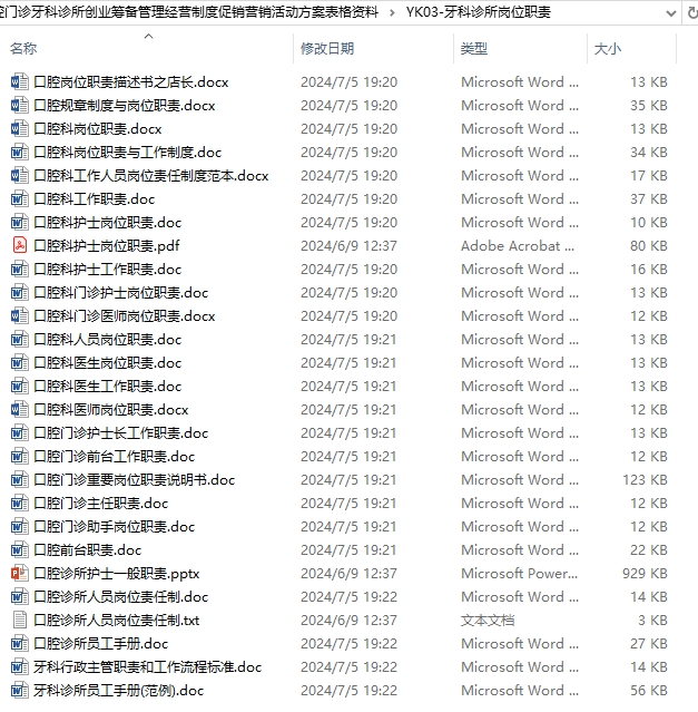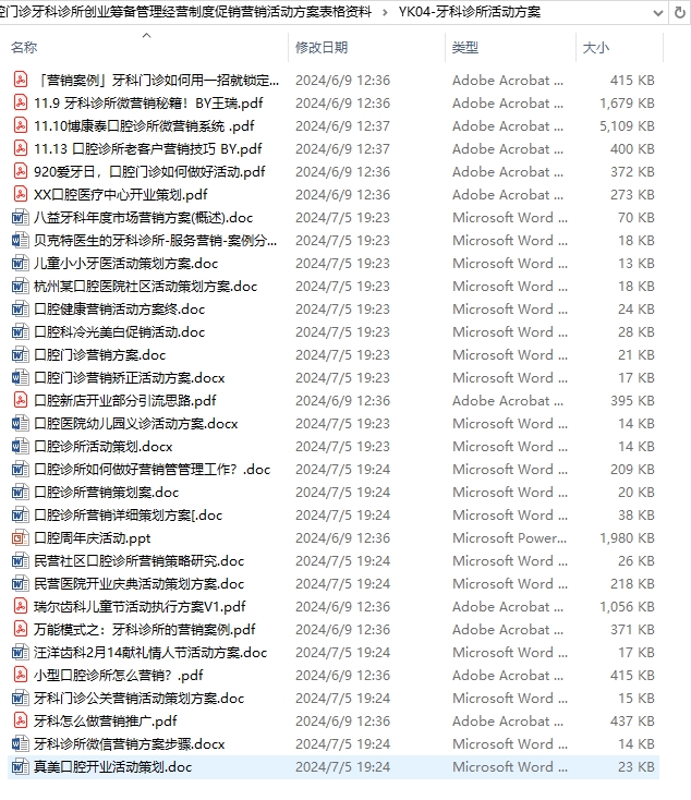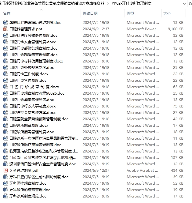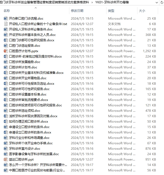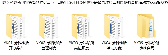 口腔门诊牙科诊所创业筹备管理经营制度促销营销活动方案表格资料目录│文件列表: