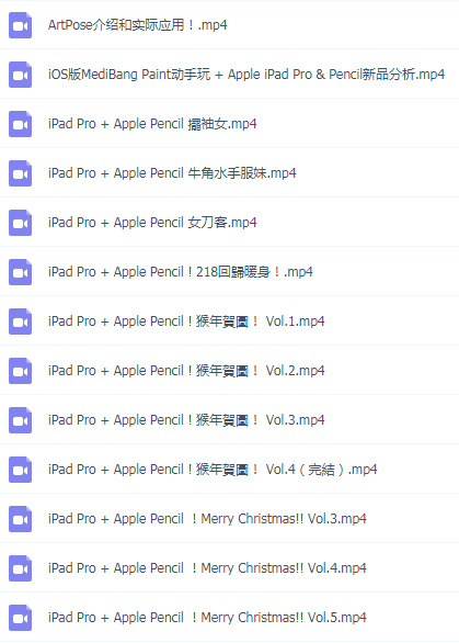 IPAD PRO板绘学习教程,因资料太多,仅展示小部分截图: