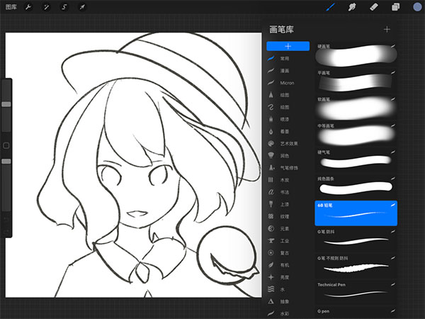 画笔库支持自己编辑、制作画笔,也支持从外部导入画笔,在最新的 5.0 版本更新中还加入了对 Photoshop 画笔文件导入的支持。不出意外的话下周我会出一篇针对画笔调试的指南,在那篇文章中会详细介绍画笔库和画笔的导入及编辑方法,本文就不做过多解释了。