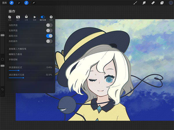 这其中「手势控制」的选项尤为重要,这里罗列了相当多操作中的快捷功能的触发方式,你可以按照自己喜好来配置。不过我个人强烈推荐在「常规」选项中禁用触摸操作和禁用双指撤销、三指重做手势,这样做的原因是我想减少一切简单手指手势有可能带来的误触风险,于是就能安心地把手腕放在 iPad 上而不用担心会影响作画。