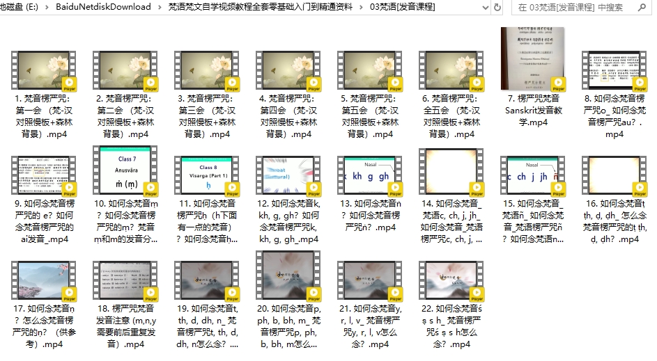 梵语梵文自学视频教程全套零基础入门到精通资料目录│文件列表: