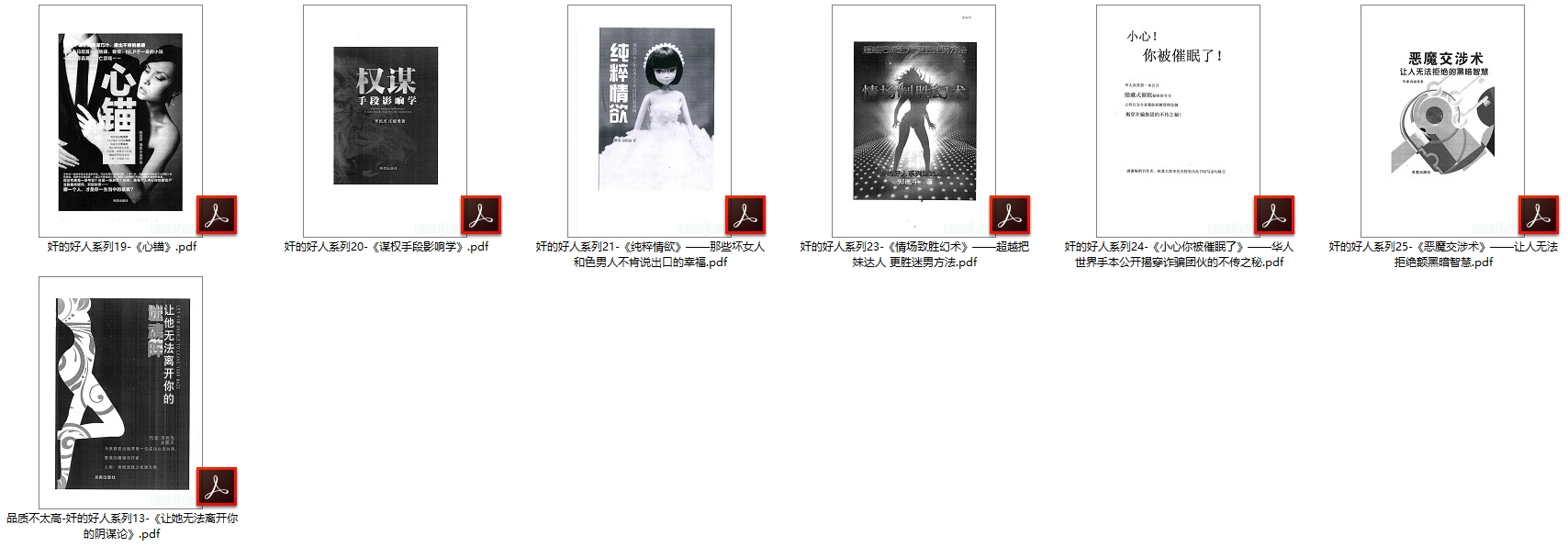 品质不太高-奸的好人系列13-《让她无法离开你的阴谋论》.pdf奸的好人系列01-《勾魂夺心洗脑催眠》——人性与心理的操控.pdf