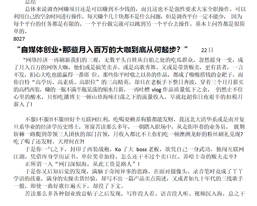 但是兄弟们,这些东西我认为只是“术”,没有人心的强力驱使,只有术是不行的,必须要有足够敏锐的观察力和思维能力,然后就是足够的耐心,不要太浮躁,不然就算你把这所有的项目都尝试一遍,也可能一毛钱都赚不到,任何在一件事情上下功夫的,必然都会有收获,三分钟热情是不行的。