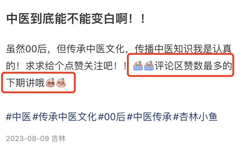 小红书本来就是年轻人居多,更喜欢年轻化的内容,中医给人印象就是中老年人在那科普枯燥的知识,而博主是00后,科普的小知识会更有趣,更适合年轻人