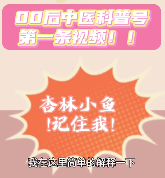 「让我先来正式的介绍一下自己,我呢是零零后,所以更懂大家的诉求,希望每天能够告诉大家贼实用的中医小知识」