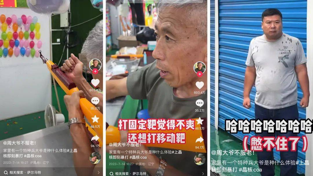 视频中,路过气球摊的大爷准备上前试手,摊主一开始还不屑地发出询问:“这大岁数能看清吗”,谁料大爷在一句“那我就干了啊”后,反手拉栓,啪啪啪地将墙上的气球射爆一大半,后期他觉得打固定靶不爽,又接连打爆了几个移动靶。整个过程一气呵成,爽感十足,原本不屑的老板先是睁大双眼,然后又满脸惊恐地见证了大爷的一系列操作。